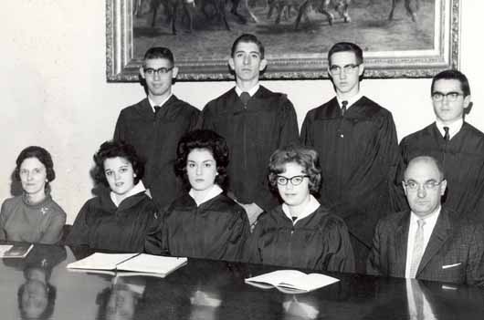 Judy Moore, Virginia Stevens, Jane Robbins, Betty Davie, Gerald Wormuth, Edward Thiele, Marlene Possemato, Jean Robbins, Johnny Charles.